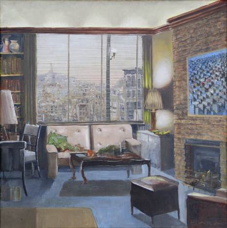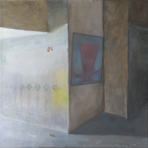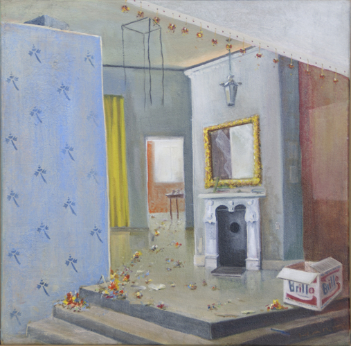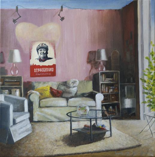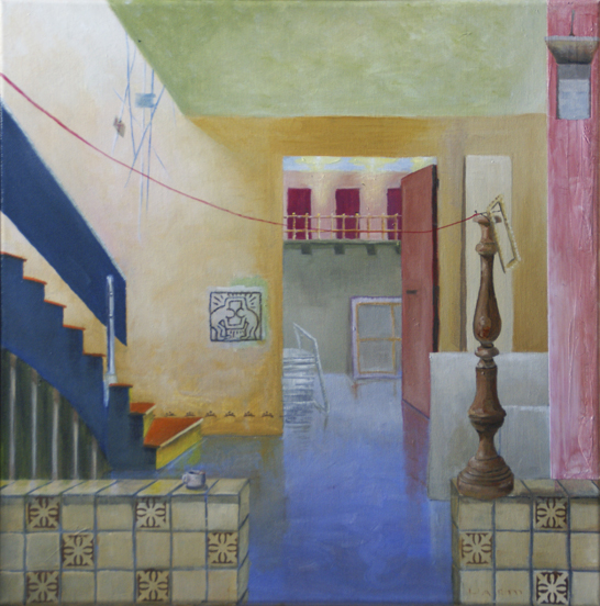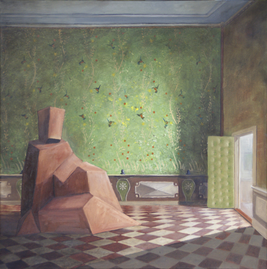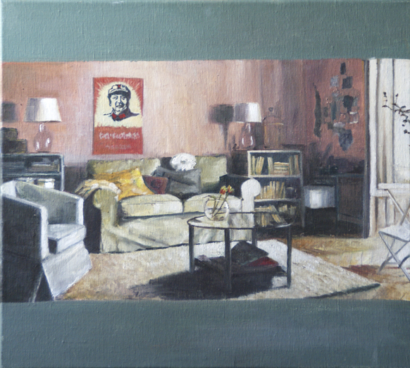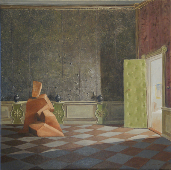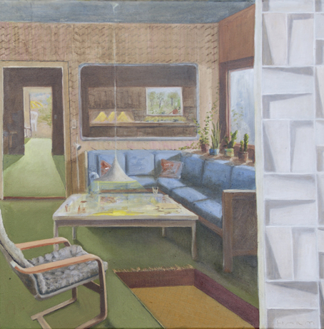 Het thema ‘the place to be’ dat ik de afgelopen jaren als onderwerp had, heeft het afgelopen jaar een duidelijk nieuw vervolg gekregen. Schilderde ik voorheen fantasie gebouwen in een bos, een park of als een geïsoleerd eiland met allerhande voor de fictieve bewoner belangrijke elementen, nu beperkt ik me tot de binnenkant.